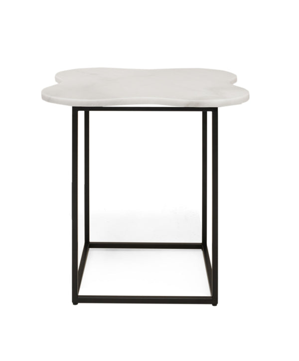 Modrest Aleidy White Marble & Black Metal End Table Model VGGMM-ET-1578-WHT-ET