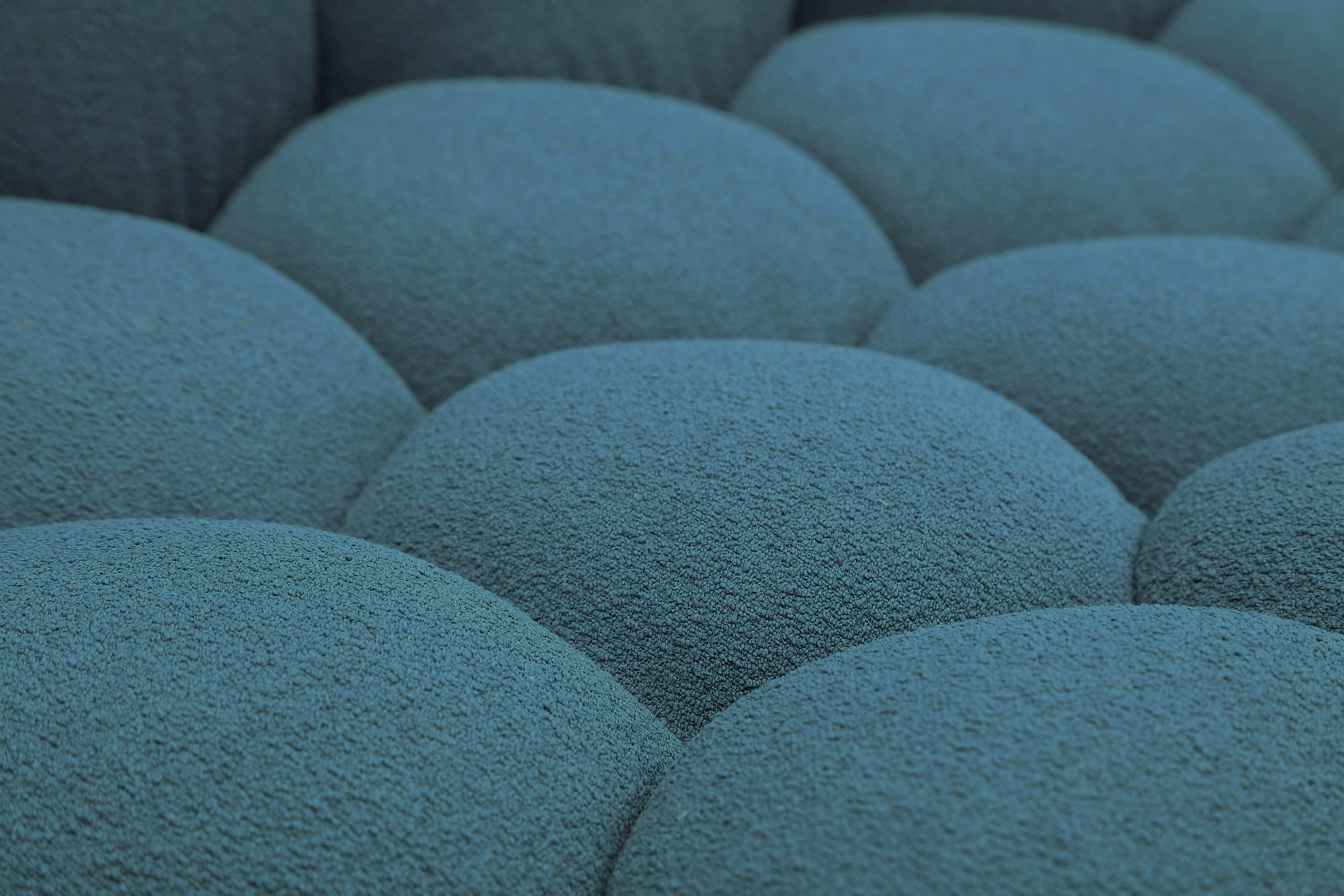 The newest addition to the Yolonda collection is the Curved Modern Dark Teal Accent Chair, offering a stunning pop of color for your living space. The hexagonal tufted cushions provide a unique, non-traditional and stylish design for the sofa as well the teddy fabric upholstery providing maximum comfort. The Yolonda also comes in a Sofa and Loveseat.