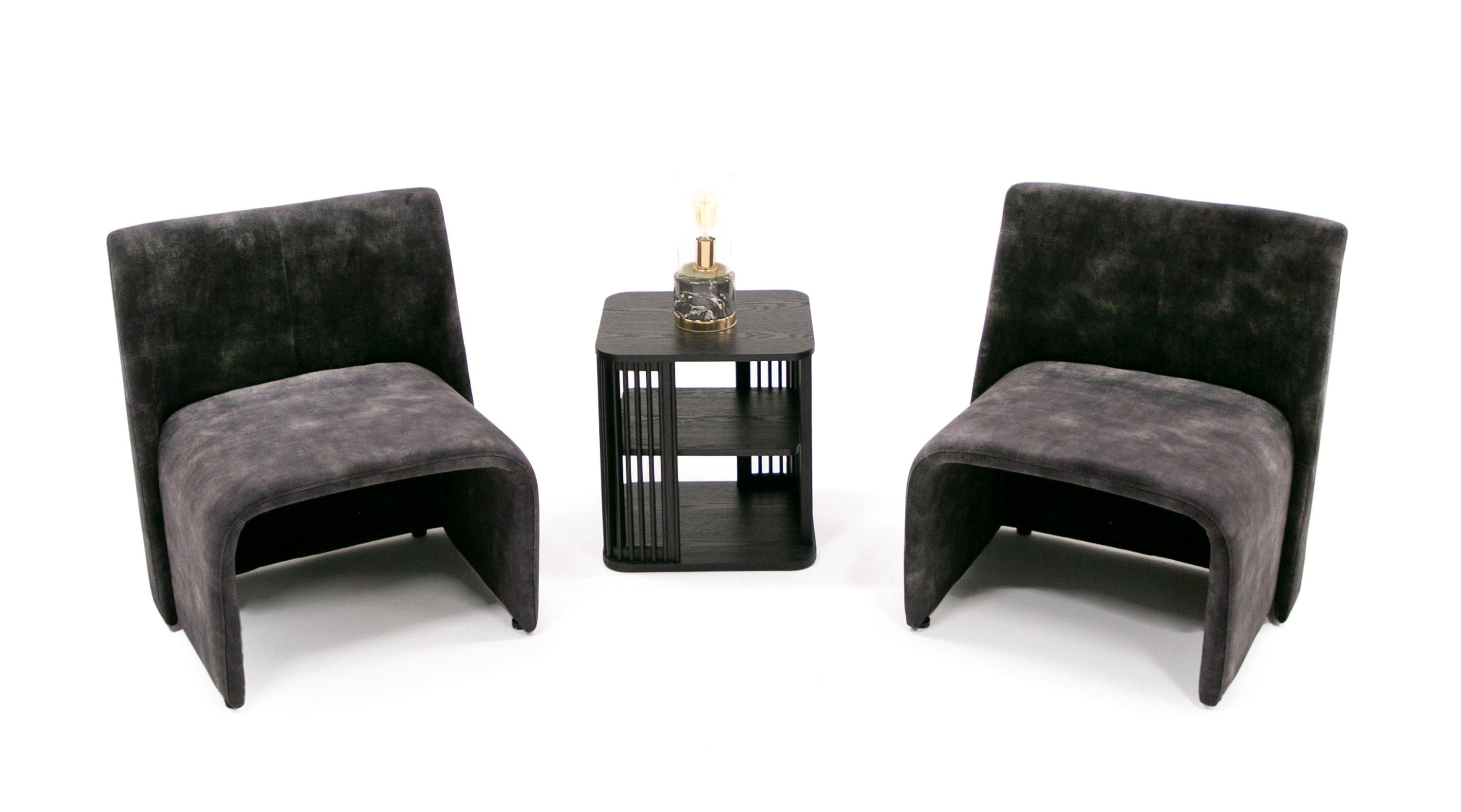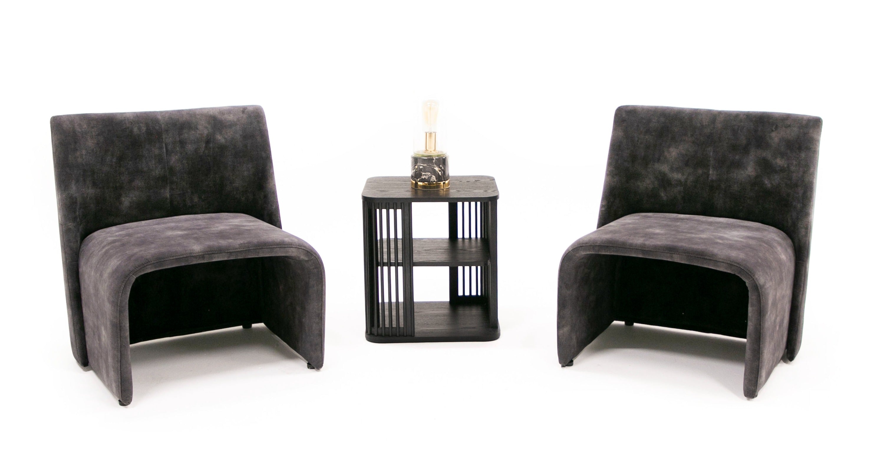 Instantly make an impression with the sleek and cool Jarvis Accent Chair. Whether furnishing an industrial loft, or a contemporary home, Jarvis will add instant class and comfort with its curvilinear shape and dimension through it's use of distressed gray fabric. The armless minimialist design adds to the light feeling and makes for a perfectly subtle statement.