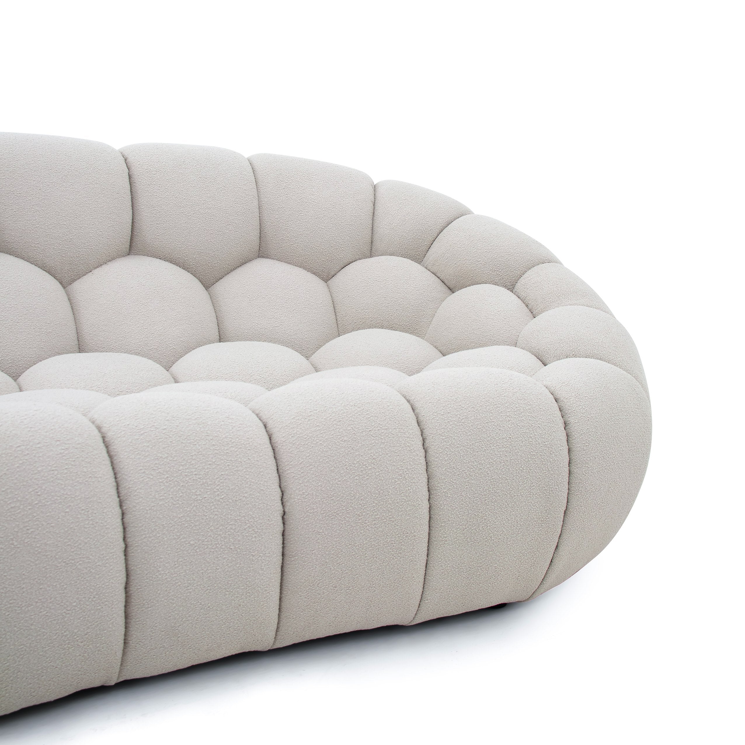 The newest addition to the Yolonda collection is the Curved Modern Beige Loveseat. The hexagonal tufted cushions provide a unique, non-traditional and stylish design for the sofa as well the teddy fabric upholstery providing maximum comfort. The Yolonda also comes in a Sofa and Accent Chair.