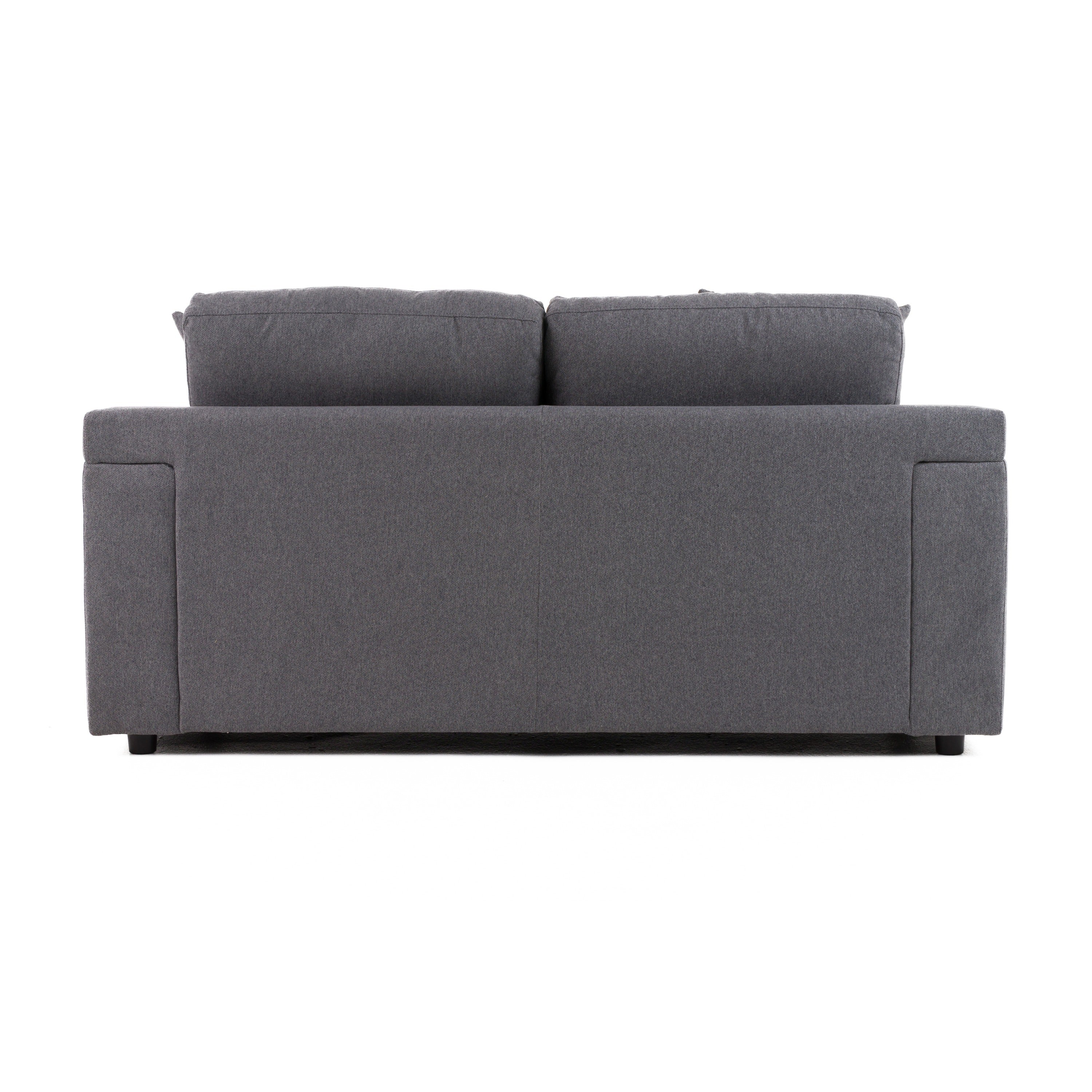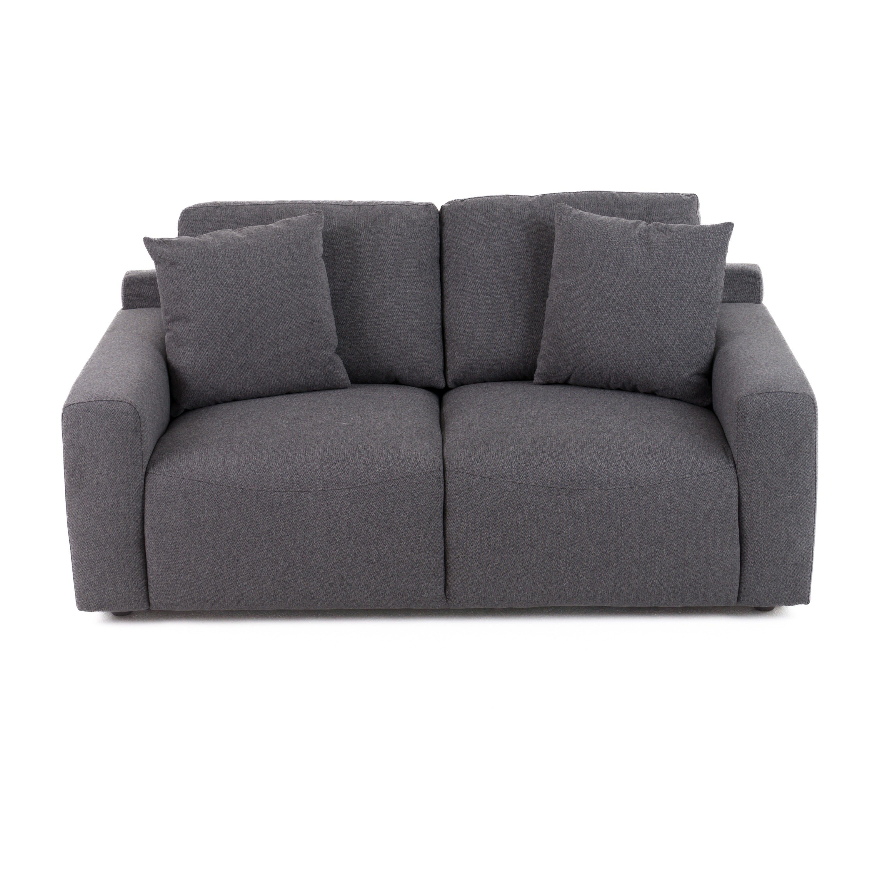 The Divani Casa Gloria Modern Grey Fabric Loveseat exudes contemporary elegance with its sleek lines and minimalist design. Upholstered in a soft, textured grey fabric, it features a spacious and inviting seating area, complemented by two throw pillows for added comfort. Its rounded edges and sturdy structure provide a refined aesthetic, making it a perfect addition to modern living spaces. This loveseat effortlessly blends style and comfort, creating a cozy retreat for relaxation or socializing.