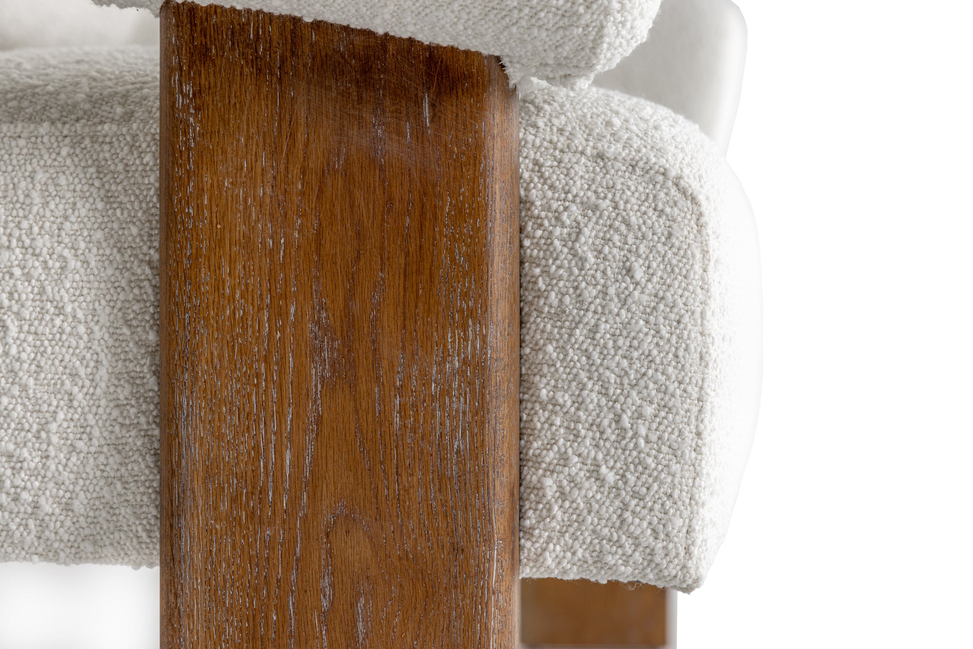 The Modrest Aledo Loveseat exudes modern elegance with its off-white fabric upholstery and sleek oak frame finish. Its distinctive rounded arms create a welcoming silhouette, while the simple yet sophisticated design effortlessly complements contemporary interiors. The plush seating invites relaxation, making it a perfect addition to any living space. With its harmonious blend of textures and clean lines, this loveseat not only serves as comfortable seating but also as a stylish statement piece.