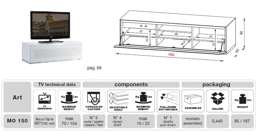 Mo Usa2 Modena Grey Tv Entertainment System Made In Italy Model VGMUMO-USA4-GR