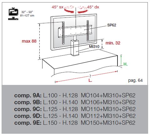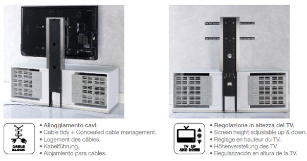 - Pillar for TV in stainless steel with TV height adjustable up & down (OPTIONAL).