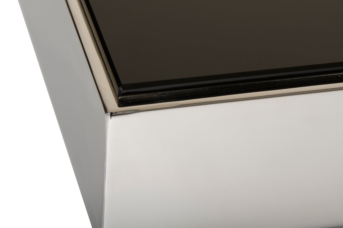 The Modrest Courtland Modern Stainless Steel Dining Table features a stylish design with a polished rectangular black tempered glass top laid on a sturdy stainless steel base. It measures W71" x D35" x H30" and requires some assembly.
