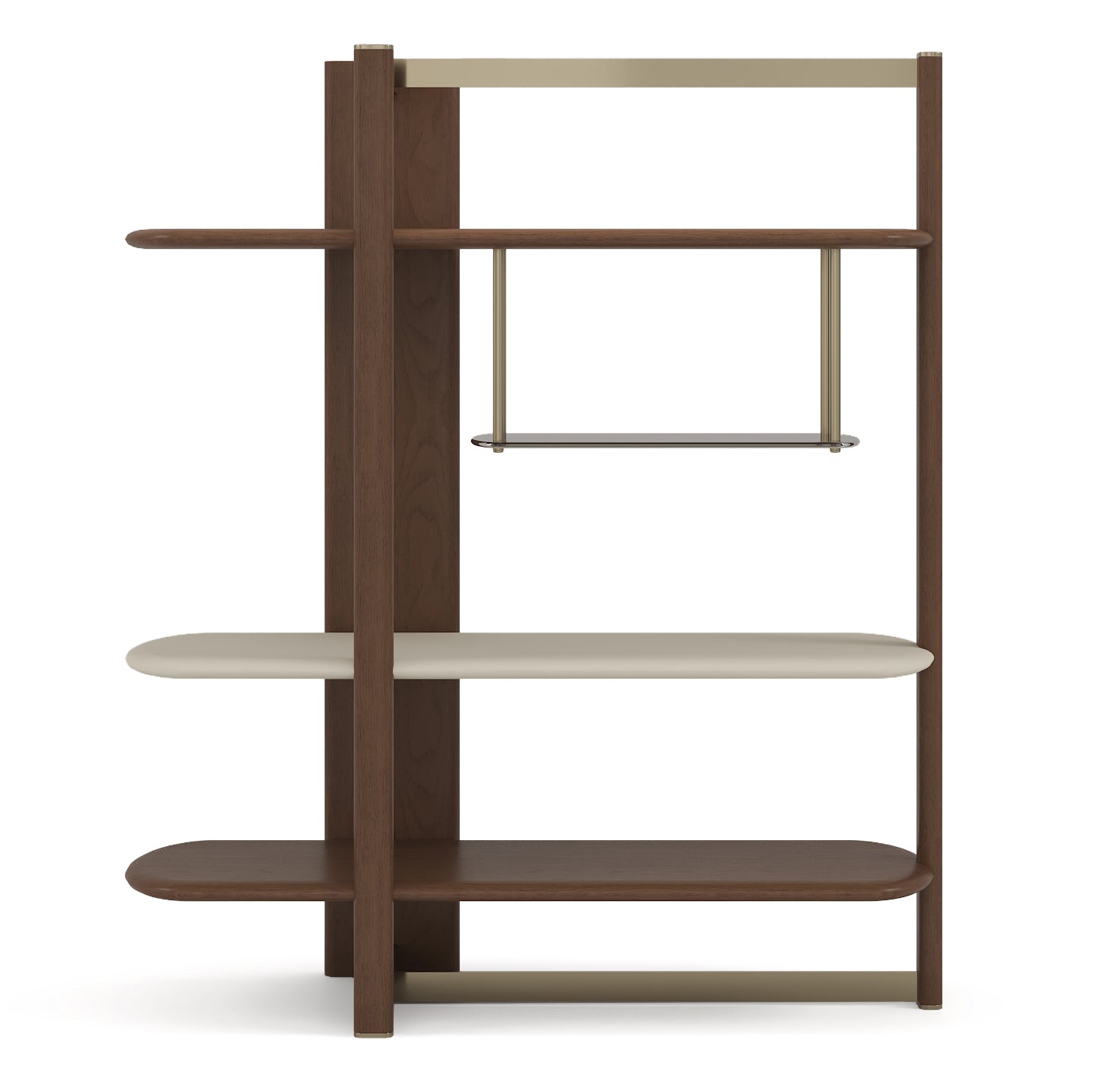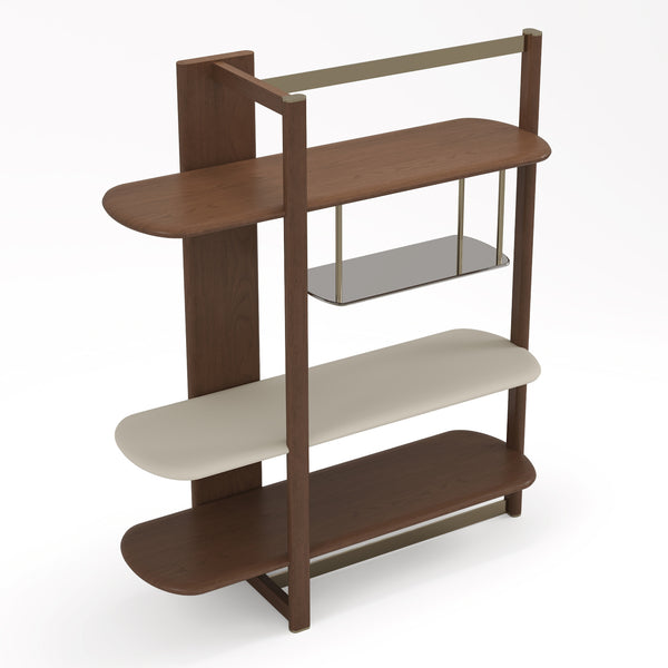 Modrest Denali Mid Century Modern Walnut & Tea Glass & Gold Left Facing Shelf Model VGCS-DS-24127-L
