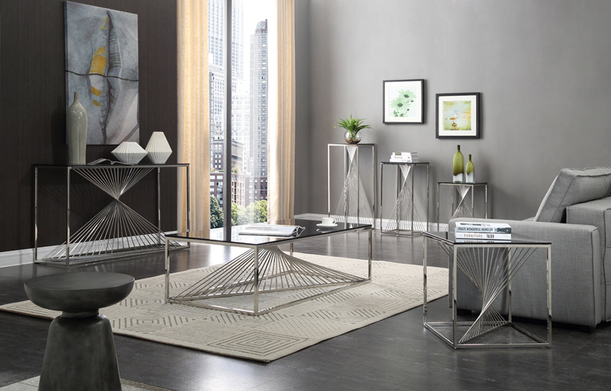 The Modrest Trinity Modern Glass & Stainless Steel Console Table is designed with style and class featuring a rectangular smoked tempered glass top. Laid on top of a rectangular smoked tempered glass top, it stands on a rectilinear stainless steel base. Rod-shaped stainless steel in a whirling design between the top and base provided an added appeal. This modern console table with a dimension of W20" x D20" x H21" requires some assembly.