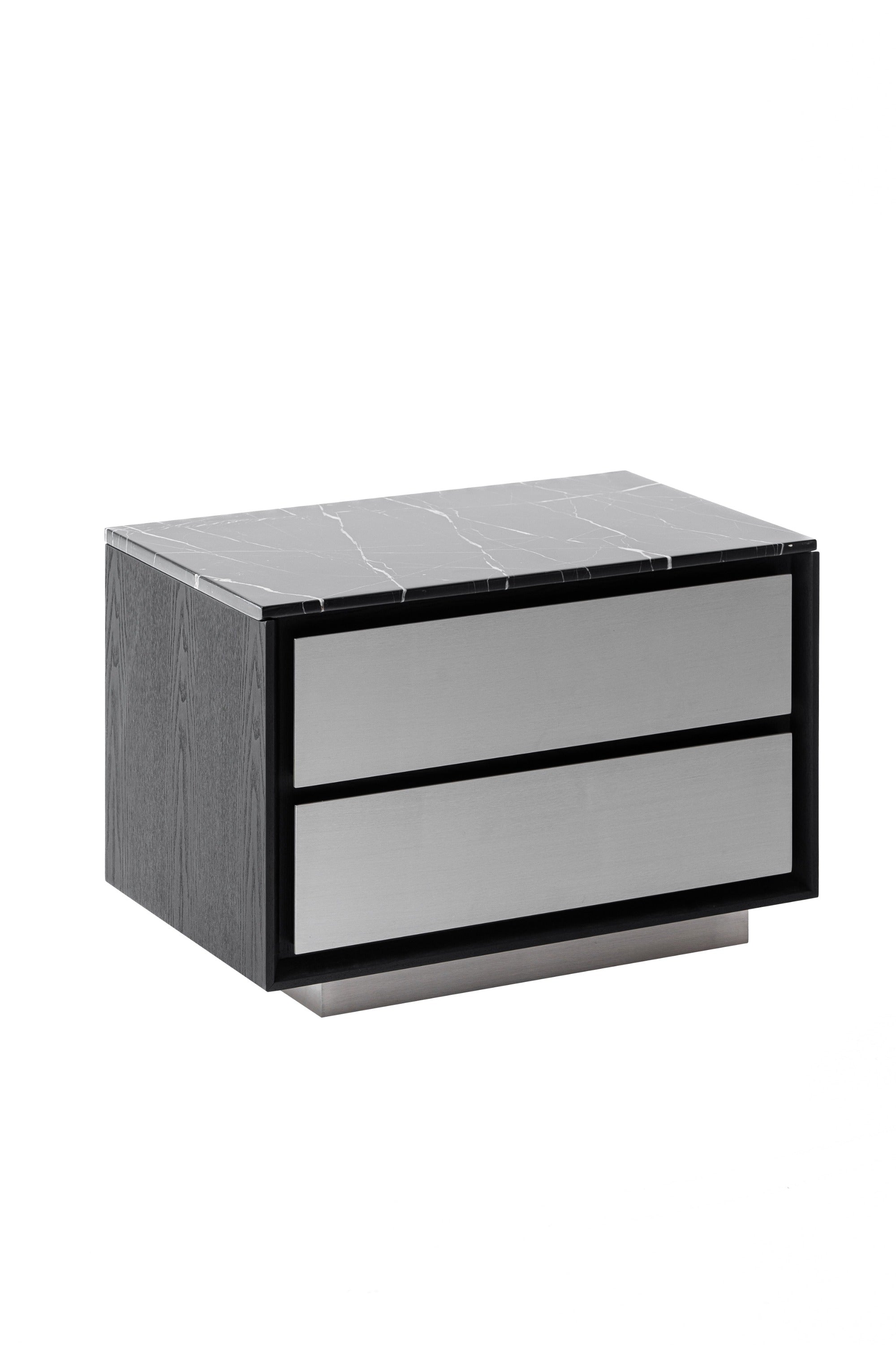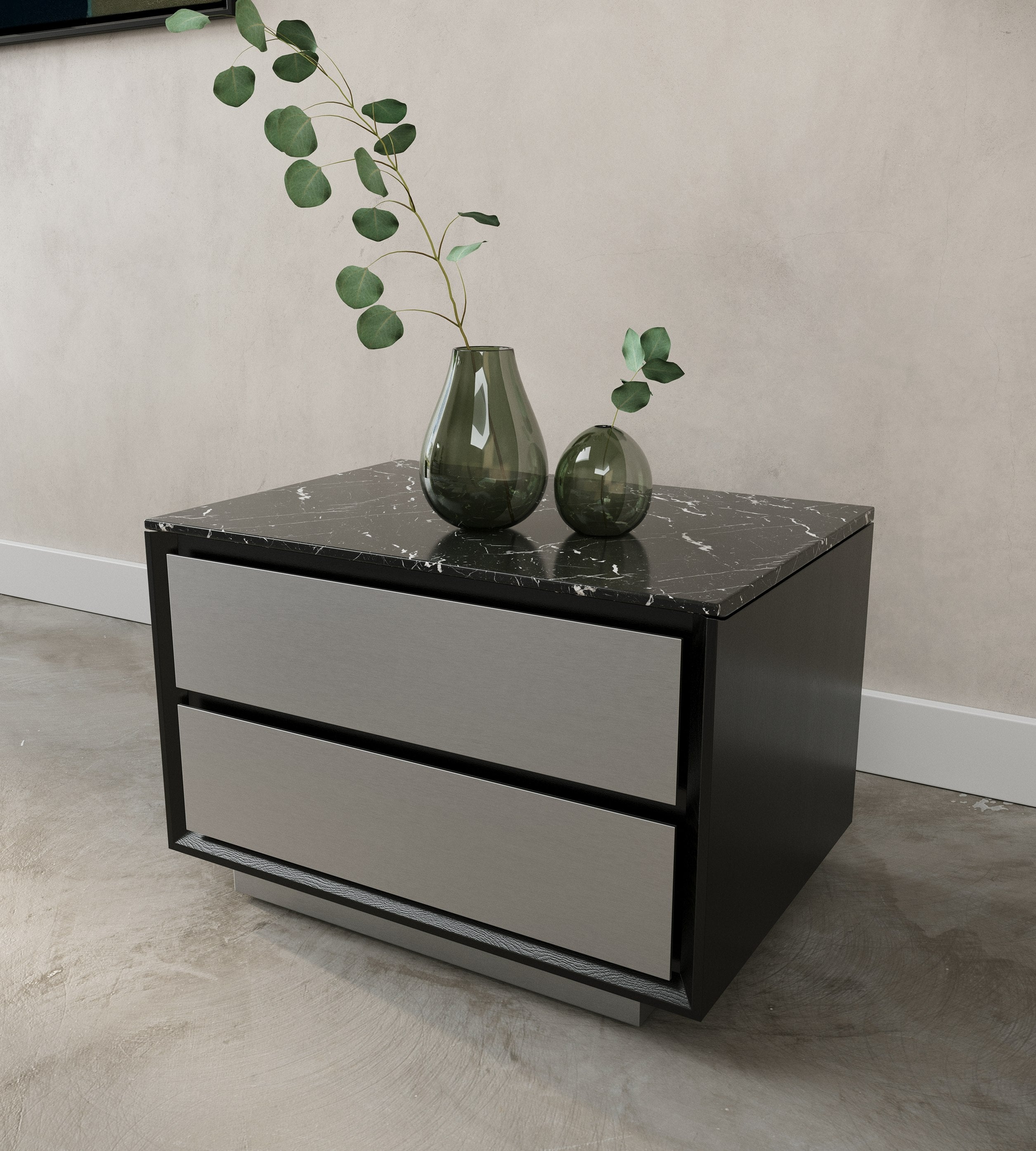 Modrest Concord Modern Black Marble & Black Ash & Aluminum Nightstand Model VGVC-N2301