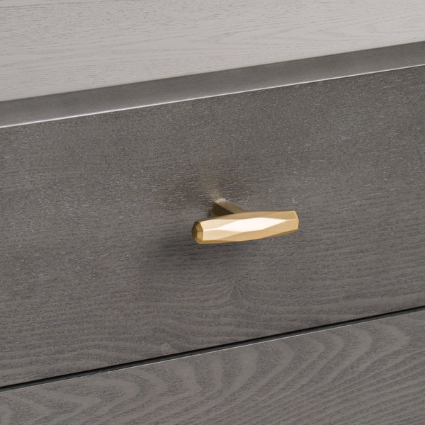 The right details can elevate a standard design to crave worthy results. This is especially true of the Bryan series and its Nightstand. Its simple rectangular shape has a grey washed Ash veneer on the frame and two soft-closing drawer fronts. A little metal contrast is achieved with brushed gold metal on the drawer pulls and angled powder-coated feet below. A great match for other Bryan series items. Some assembly is required.