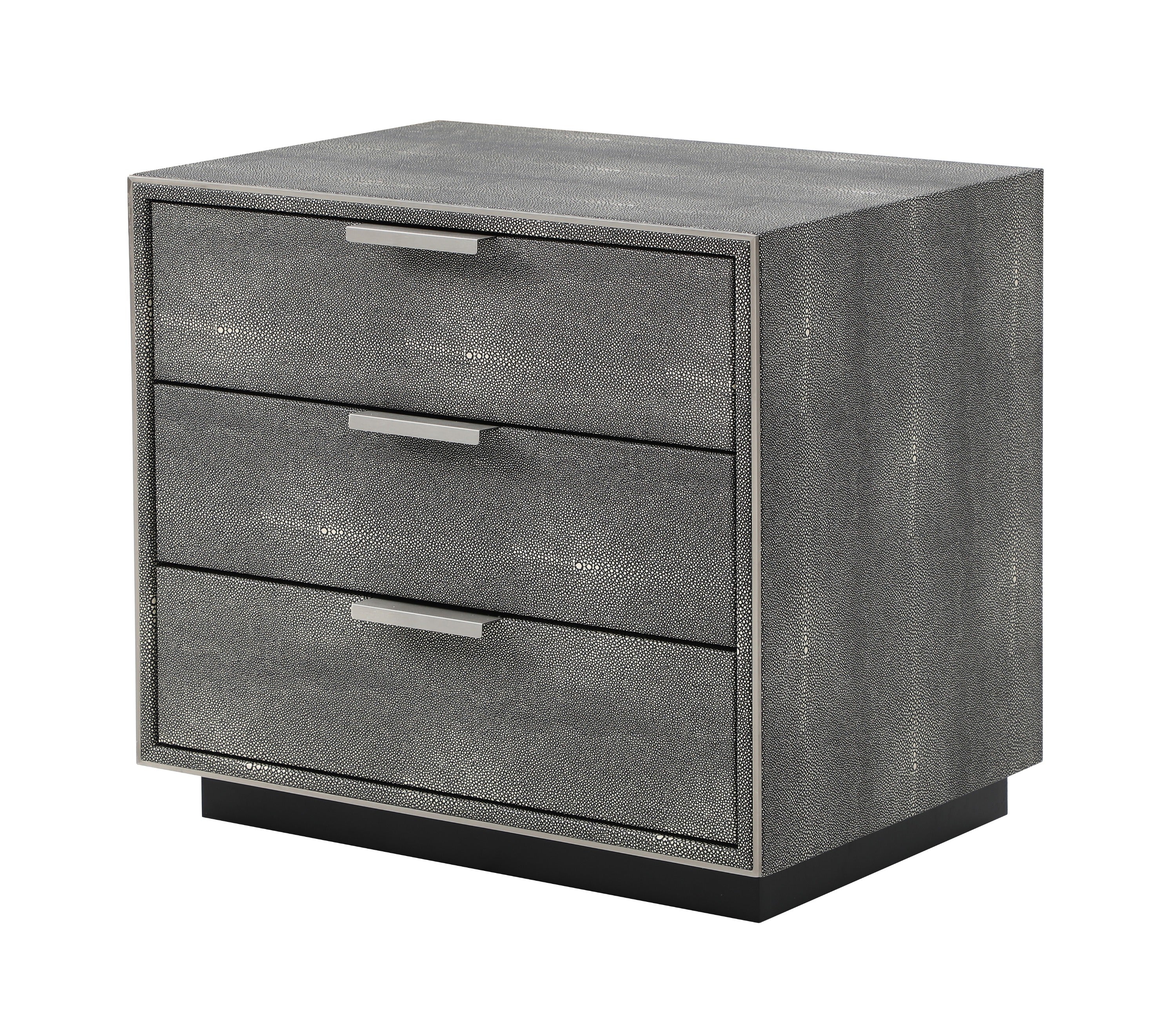 Modrest Dynasty Modern Shagreen Three Drawer Nightstand Model VGVCN2108-3-GRY-NS
