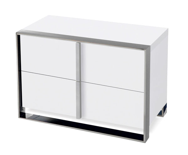 The Francois Nightstand is a beautiful modern piece for your bedroom. The white high gloss finish pairs expertly with the stainless-steel accents. Two soft closing drawers can handle all your storage needs.
