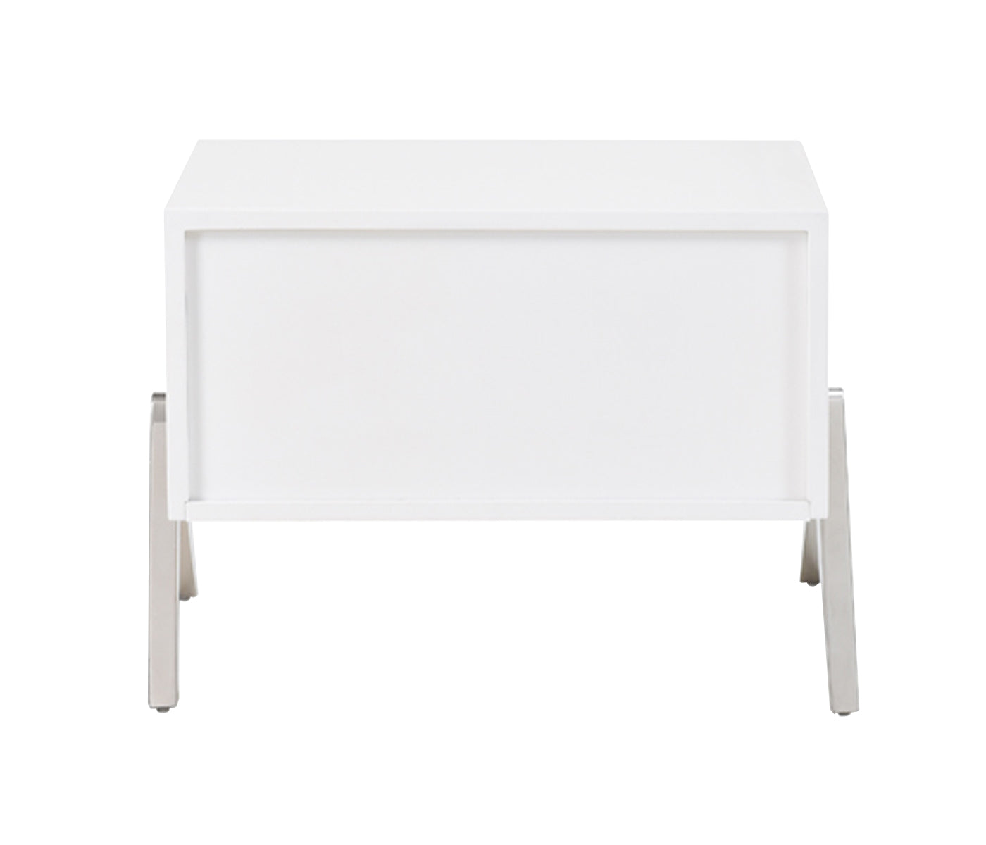 The Modrest Candid Modern White Nightstand presents a winsome style featuring a dainty white high gloss finish. Fitted with a single drawer with a linear front design, it stands on durable upside-down V-shaped stainless steel legs. Requiring no assembly, this modern nightstand has a dimension of W26" x D17" x H19".