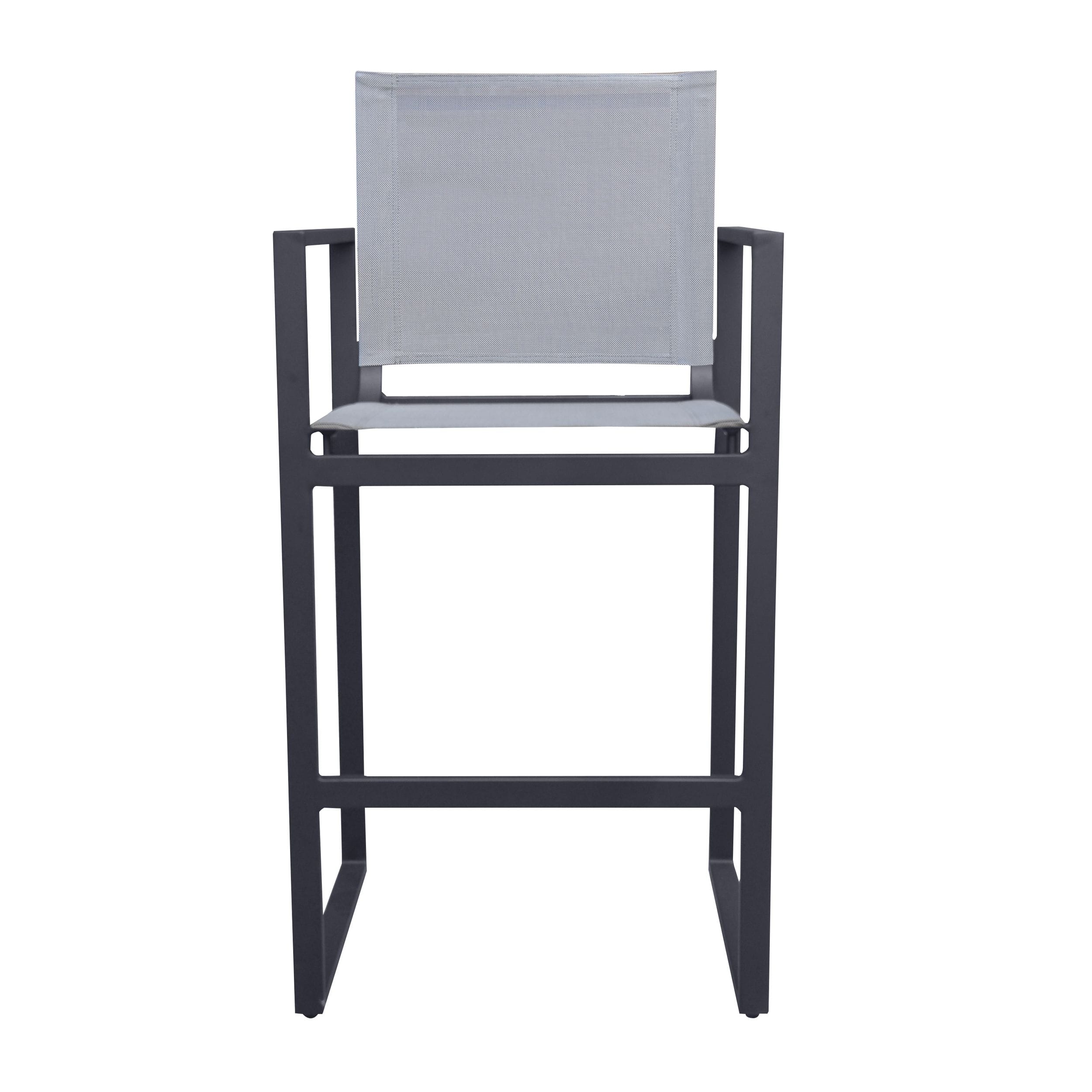 The Kayak Outdoor Bar Stool is the perfect piece for your summer cookout. The simple modern design and aluminum black metal frame make this a light and movable piece and keeps it extremely versatile. Pair the stools with other Kayak Items to complete the set.