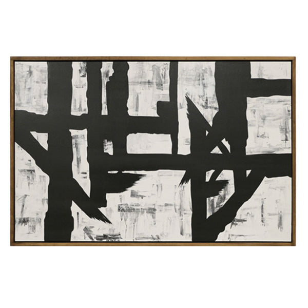 The Modrest Long Highway modern painting features a striking abstract design, characterized by bold black shapes interspersed with soft white textures. This captivating artwork adds a contemporary flair to any space, making it a perfect focal point for living areas or galleries. The interplay of stark contrasts and dynamic forms creates a sense of movement, inviting viewers to explore the depths of its intricate composition. Framed elegantly, this piece complements modern decor while enhancing the overall aesthetic of your interior.