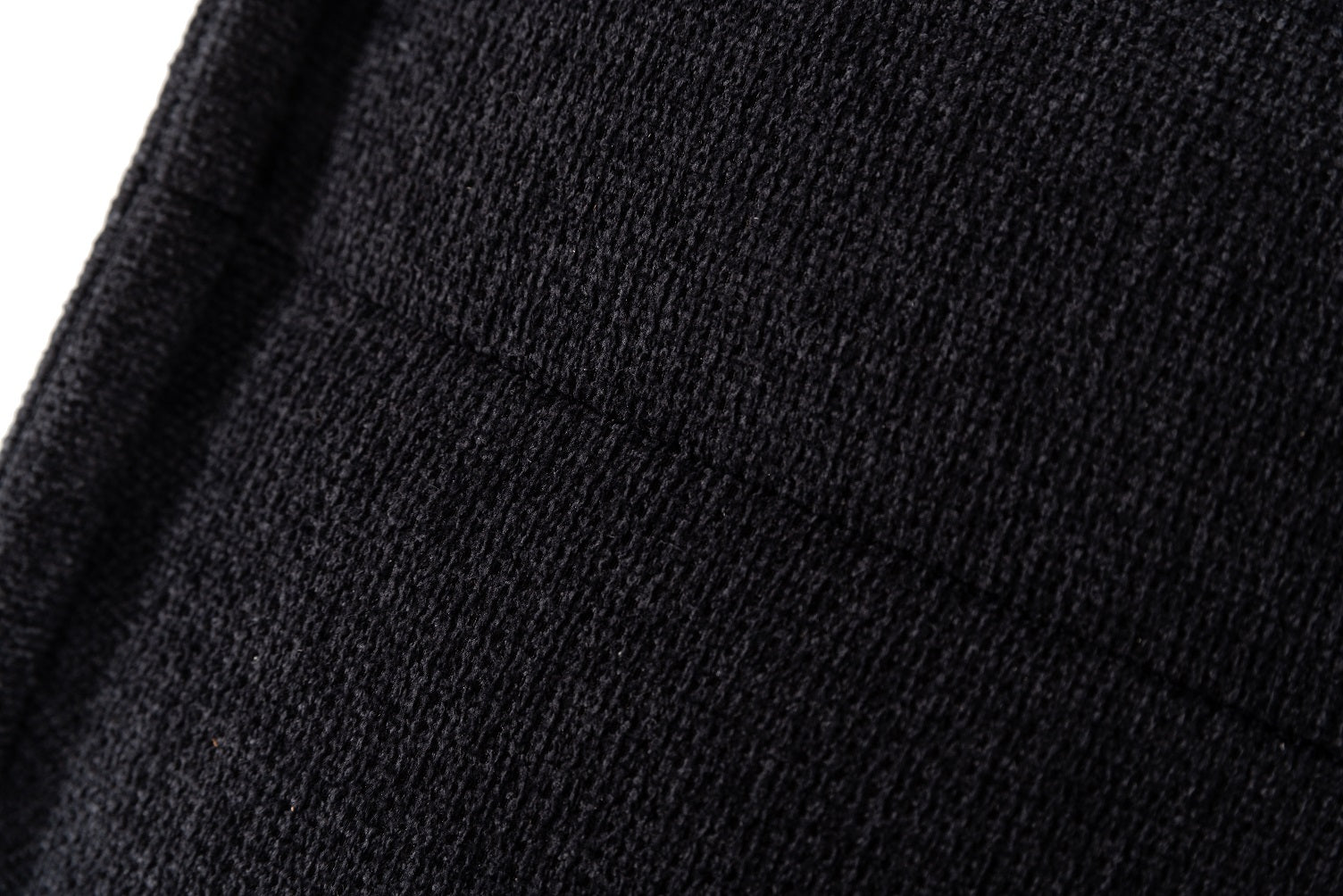 The Nolden sectional is a contemporary exhibit of modular design. The set includes 3-armless single seaters, a corner seat and an ottoman. Upholstered in a black textured fabric, all of the seats and backs contain high density (1.9)foam for maximal comfort and optimal support. the low profile seat cushions are double welted with square stitched tufting on the seat, the back cushions are double welted as well, and held up with bolsters. The modularity of the sofa allows custom configuration, so you can make the piece fit your living space.
