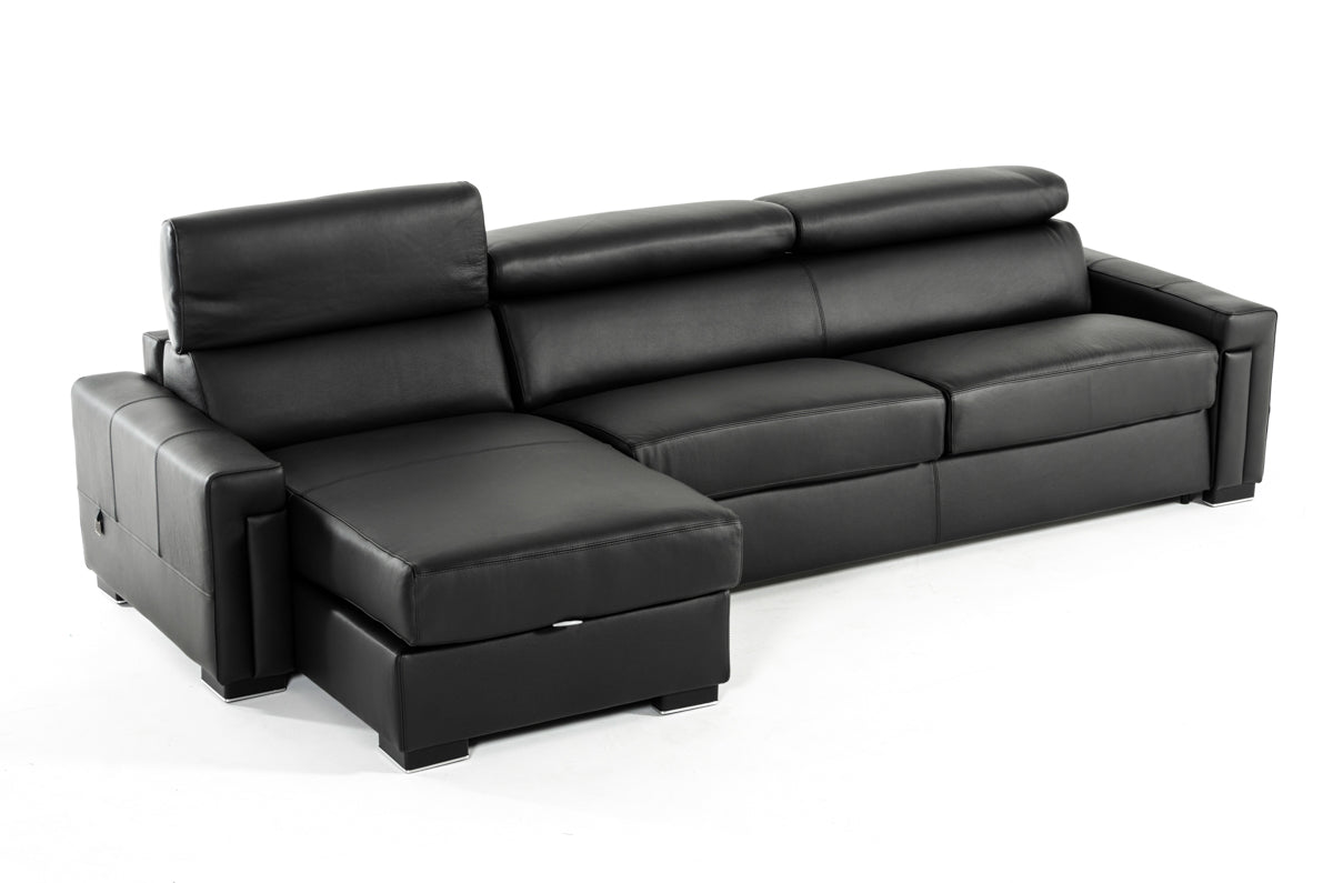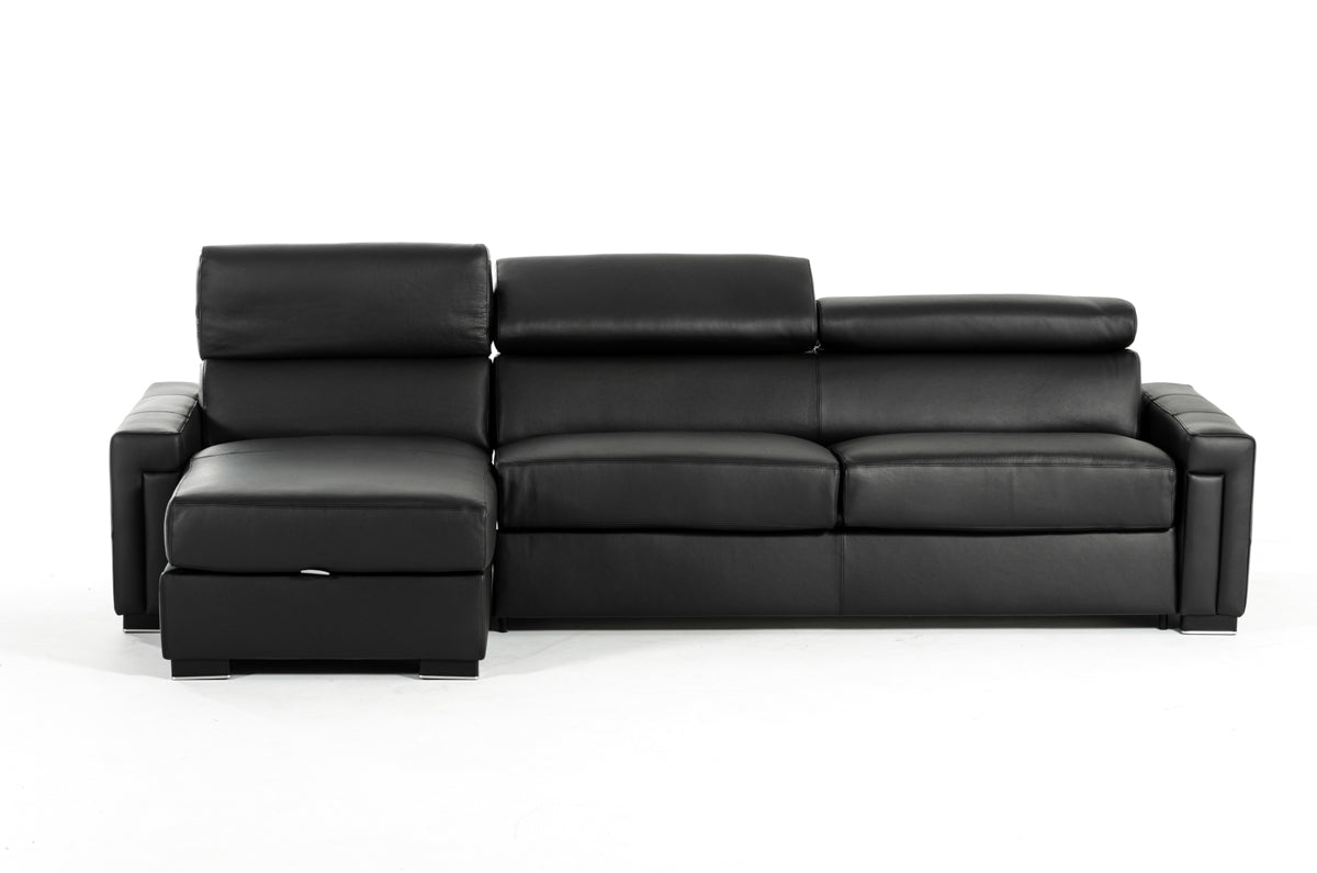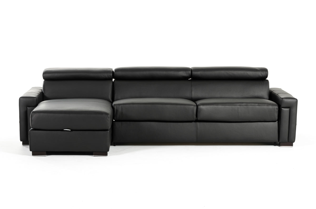 Lamod Italia Sacha Modern Black Leather Reversible Sectional Sofa Bed With Storage Model VGNTSACHA-BLK