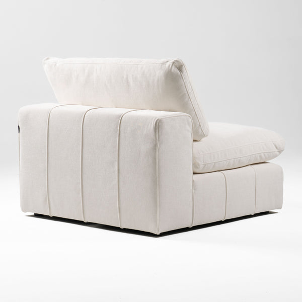 The Vicki Sectional redefines luxury with its contemporary lines and roomy seats. The set is modular and comes with three armless chairs, three corner pieces which allows you to set it up in the perfect configuration for your living space! The removable cushions and cushion covers make it incredibly easy to wash. The foam and fiber fill are soft, letting you sink in after a long day. The addition of purchasing the ottoman provides an additional place to sit or allows you to stretch out on the sofa. Capable of seating up to 6 people, it is perfect for entertaining and goes perfectly in a coastal or farmhouse style home.