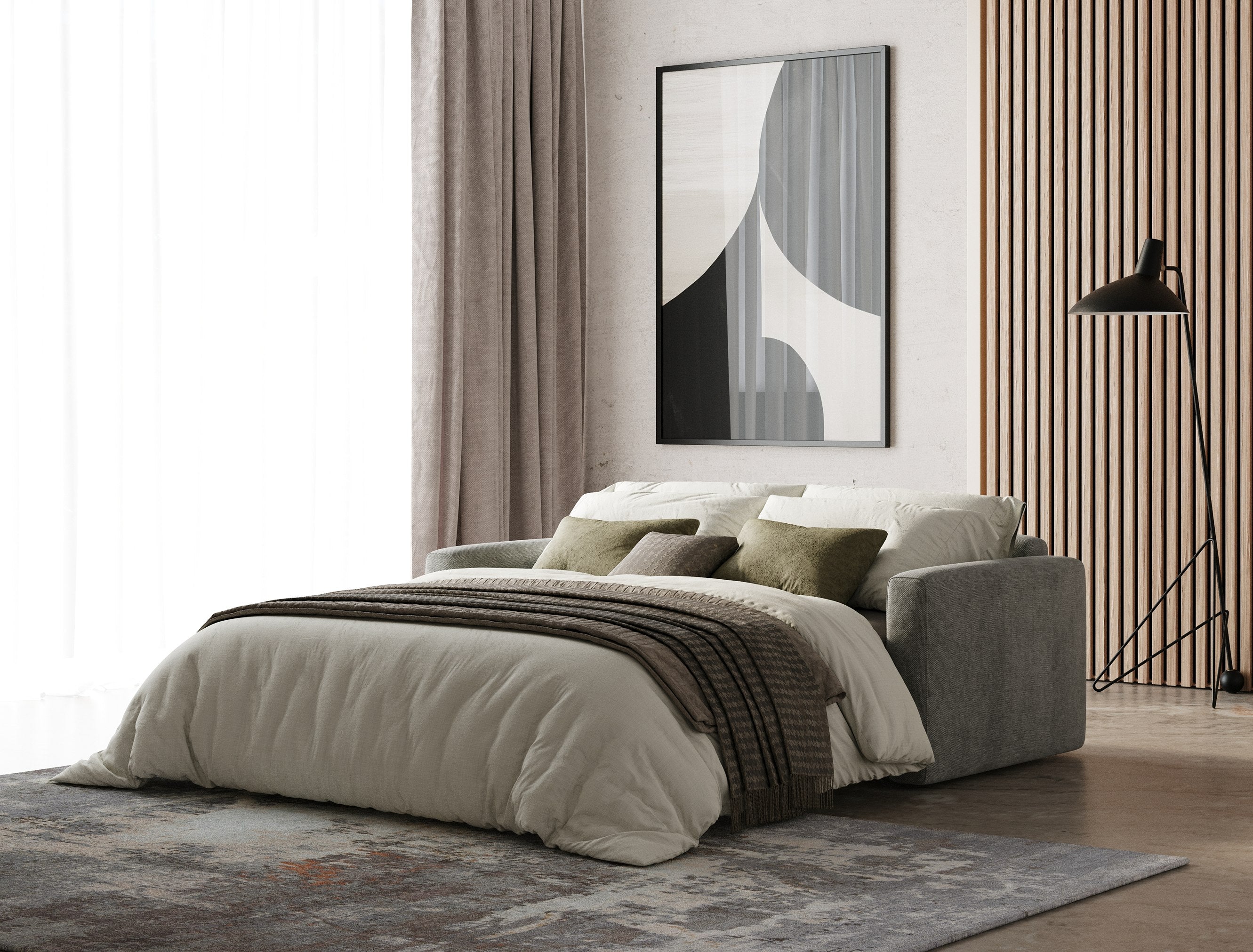 Nothing is better than knowing your overnight guests will be comfortable on our full sleeper! The LAMOD Italia Revers Sofa Bed is a traditional style sofa featuring square arm, pocket spring & foam seating and beautiful grey Aragon performance fabric. The sleeper mattress is easily accessible with a pull tag from the center and folds outward to a full size mattress, supported by a metal frame. This sofa is sure to be the finishing touch to make your house feel like a home!