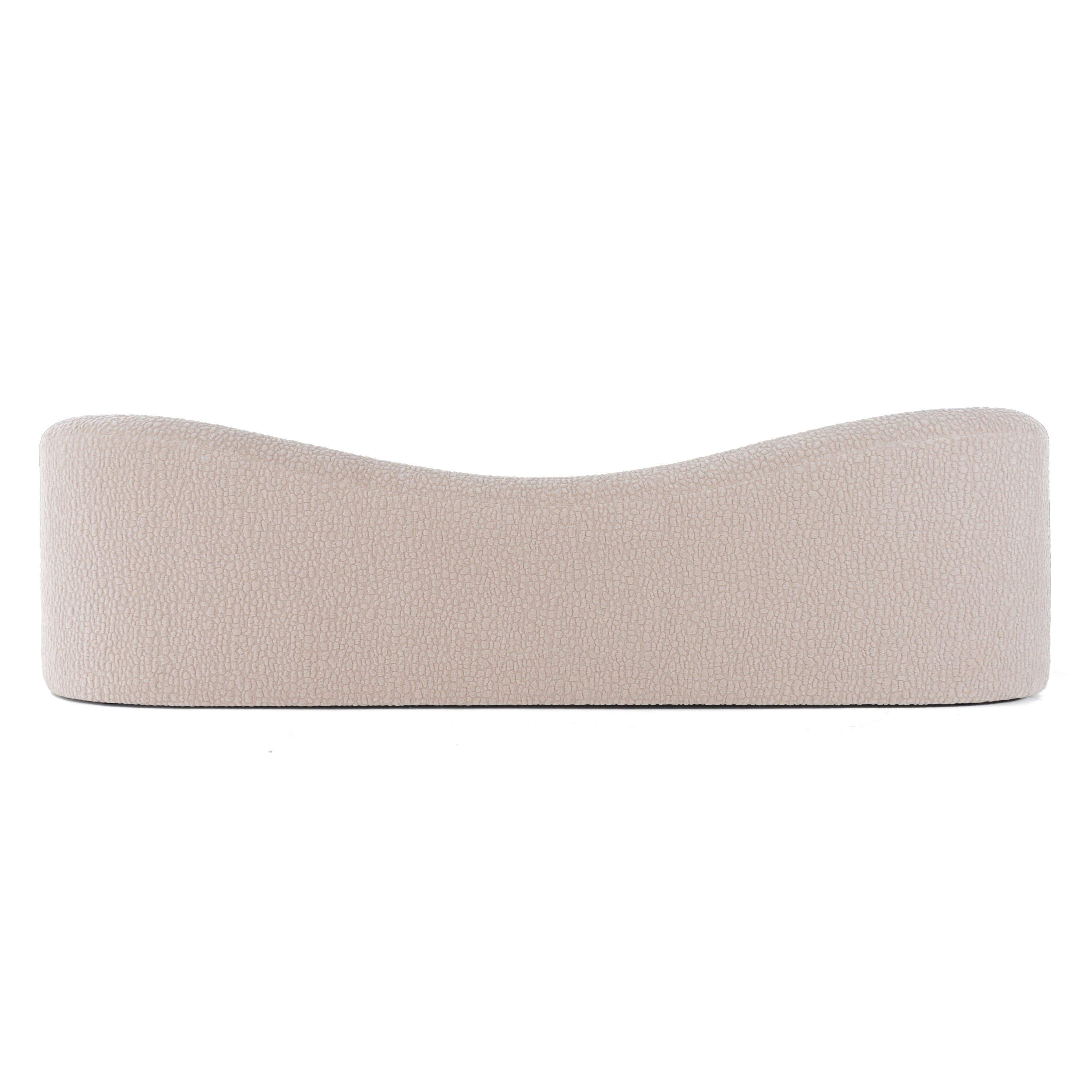 The Divani Casa Calico Contemporary Beige Fabric 3-Seat Sofa showcases a striking, modern design with smooth, flowing lines and organic shapes. Its plush, beige fabric adds warmth and comfort, while the uniquely curved backrest and spherical cushions provide a playful touch that enhances its visual appeal. This sofa is perfect for creating an inviting lounge space, effortlessly blending style with coziness. Its contemporary aesthetic makes it a standout piece in any modern living room setting.
