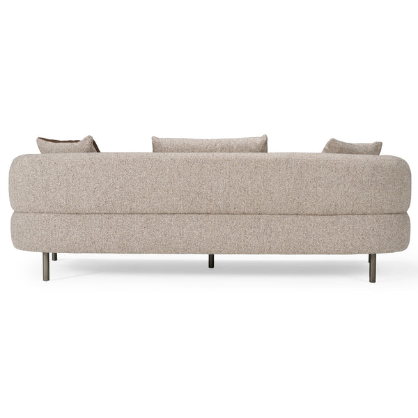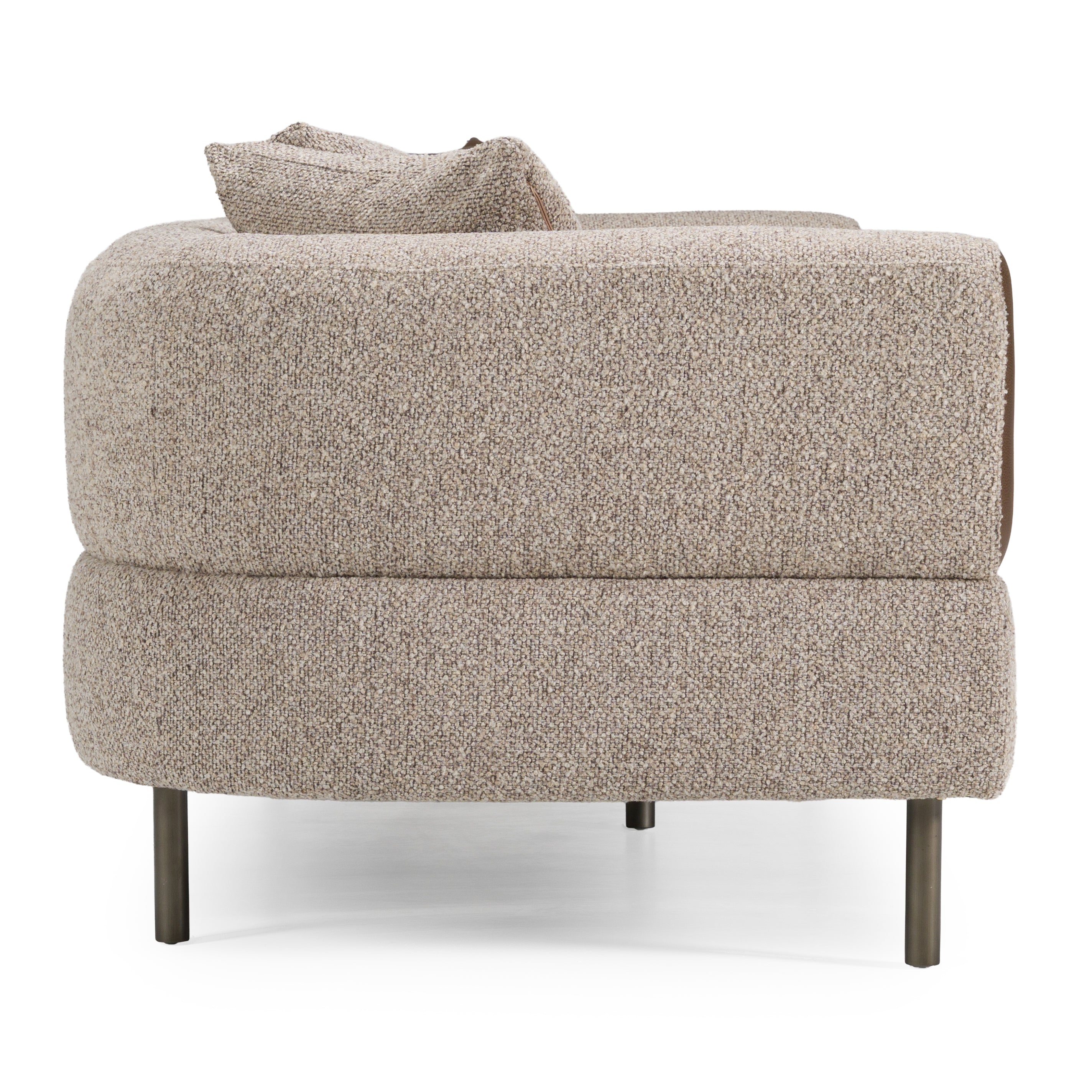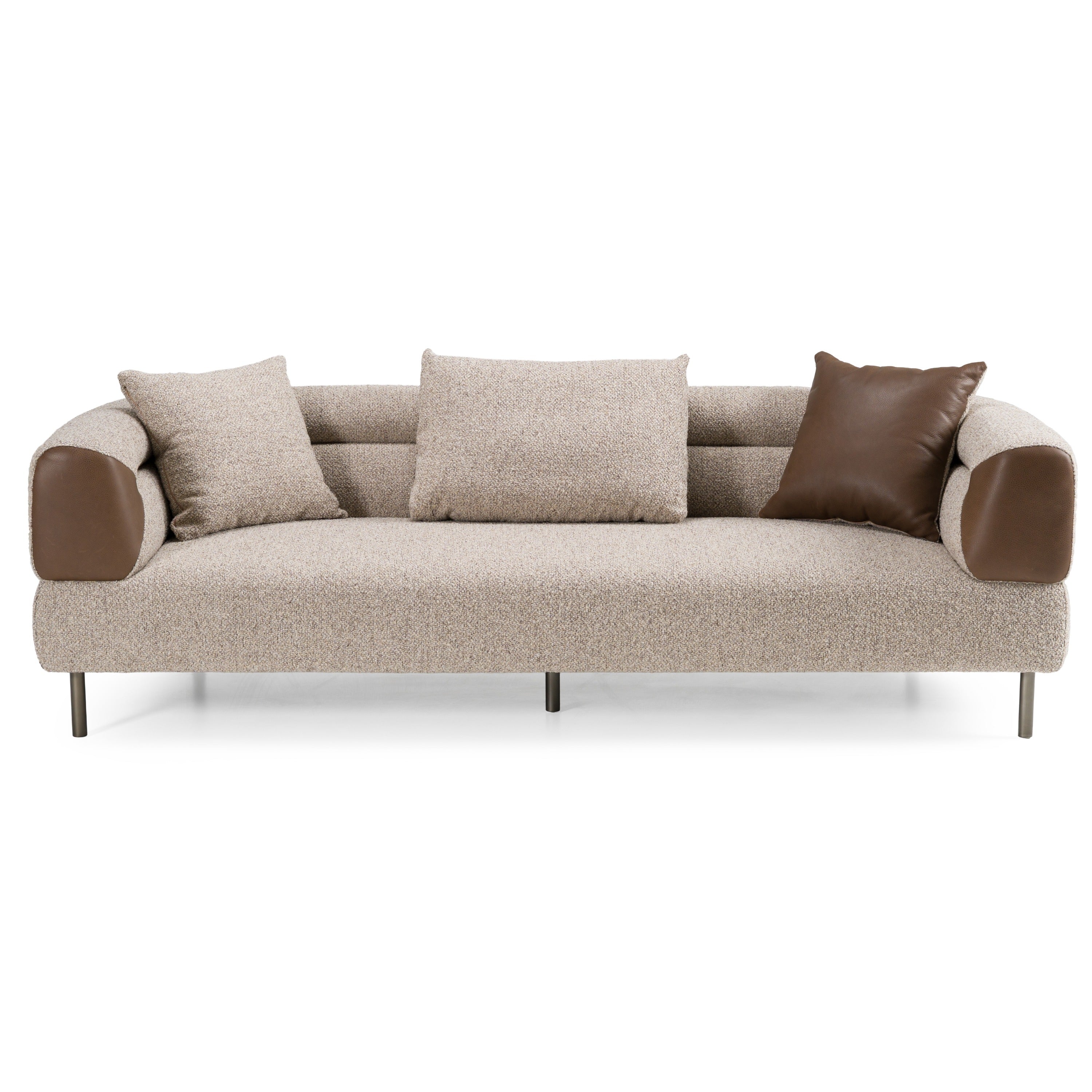 The Divani Casa Plume Modern Sofa is a harmonious blend of contemporary design and inviting comfort, perfect for the discerning homeowner. Upholstered in a rich light brown fabric, its soft tones evoke warmth and understated elegance, while sleek metal legs and a solid ash frame speak to its impeccable craftsmanship. Accented with three plush throw pillows, this sofa becomes a sanctuary for relaxation and style. Whether placed in a minimalist living room or a cozy modern retreat, the Plume Sofa transforms your space into a haven of sophisticated comfort and timeless allure.