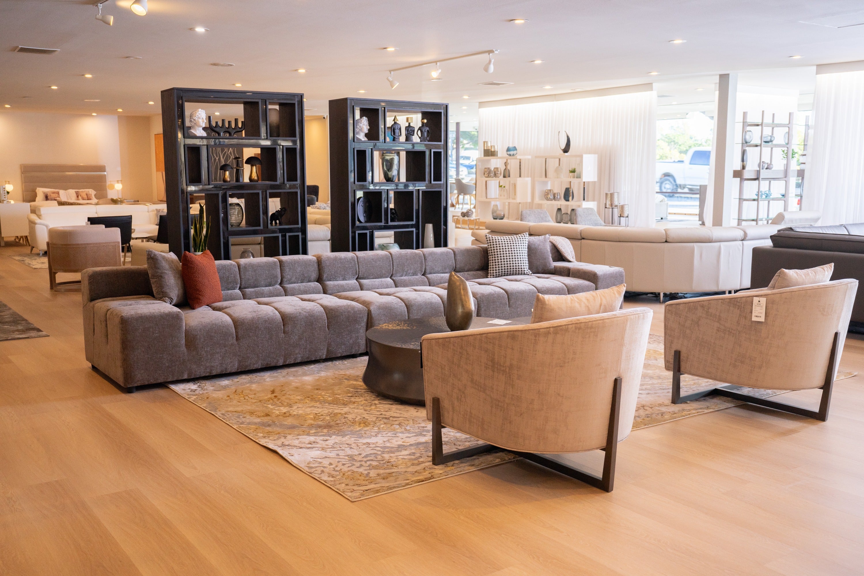 The Divani Casa Rhonda is a modern four-seater sofa that effortlessly blends style and comfort. Its sleek, low-profile design features a striking grey fabric with plush tufted detailing, adding a sophisticated touch to any space. The sofa is accentuated by strategically placed decorative cushions in varying textures. Its linear silhouette and minimalist aesthetic make it an ideal centerpiece for contemporary living rooms, inviting relaxation and conversation. This versatile piece seamlessly enhances both casual and chic décor, showcasing a balanced harmony of function and modern elegance.