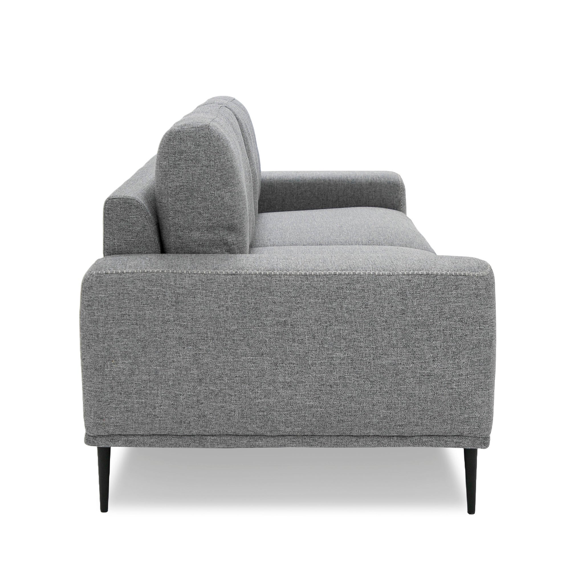 The Fonda Sofa is a beautiful two-seater contemporary sofa that provides an intimate seating arrangement for ones living space. The cushions are upholstered in dark grey fabric with removable cushions for easy cleaning and features simple yet elegant stitching. The Fonda pairs perfectly with its matching accent chair.