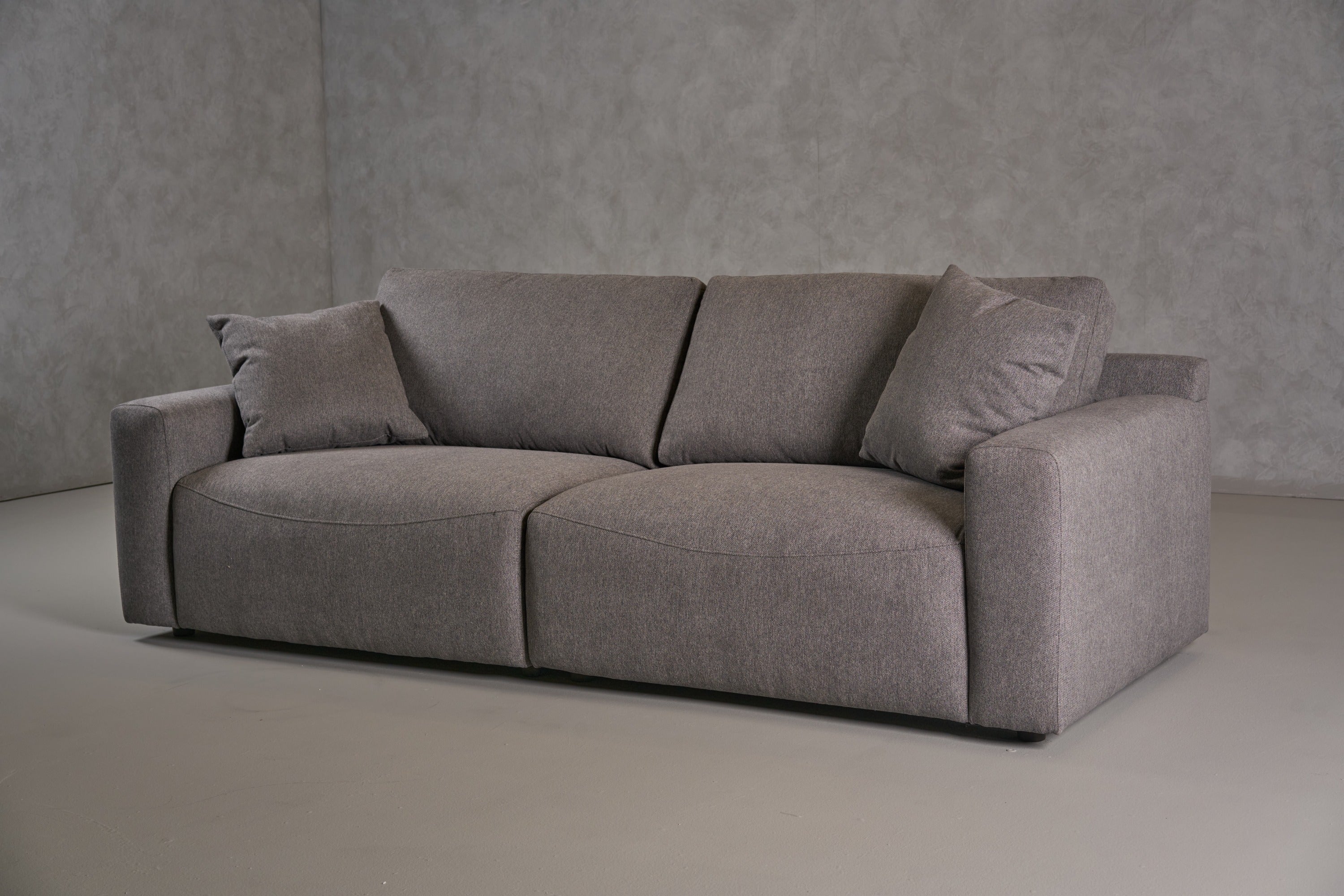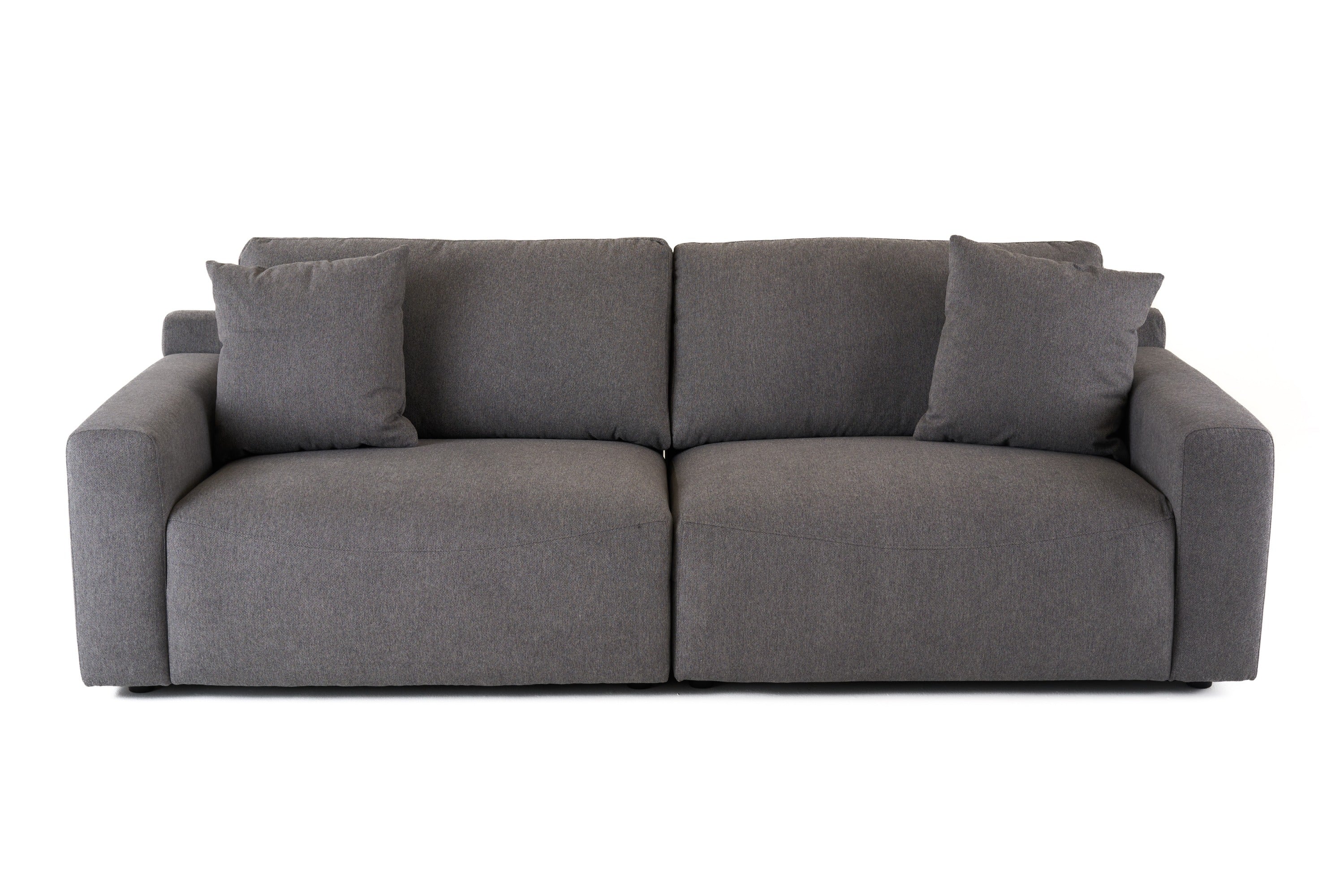 Introducing the Divani Casa Gloria, a modern grey fabric sofa that exemplifies contemporary elegance. Its clean lines and cushions invite relaxation, while the subtle texture of the fabric adds depth to any living space. The low-profile design is complemented by oversized armrests, creating an inviting look. With two chic accent pillows included, this sofa is perfect for both lounging and entertaining. Ideal for minimalist and contemporary interiors, the Gloria effortlessly enhances your home s aesthetic with its understated sophistication.