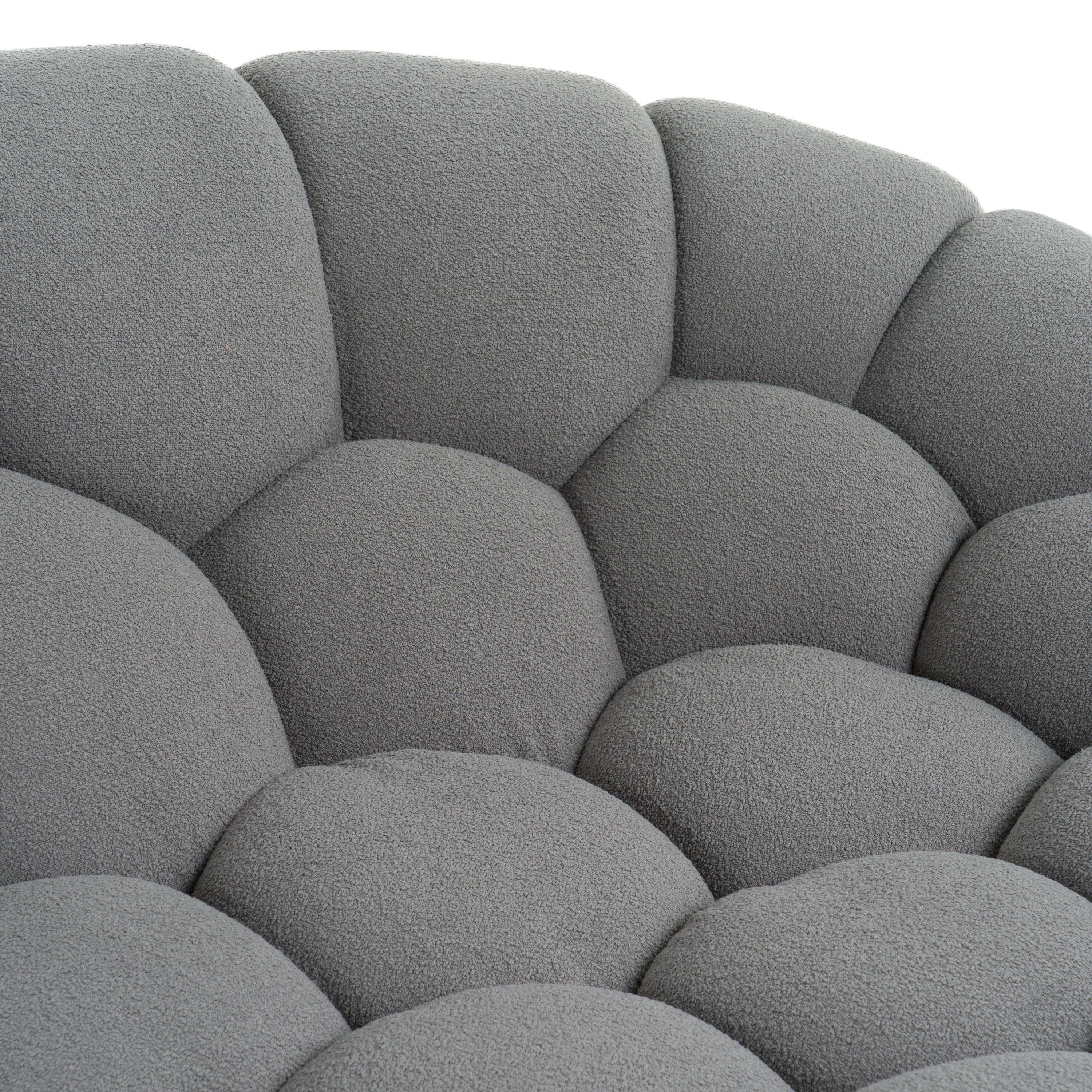 The newest addition to the Yolonda collection is the Curved Modern Light Grey Sofa. The hexagonal tufted cushions provide a unique, non-traditional and stylish design for the sofa as well the teddy fabric upholstery providing maximum comfort. The Yolonda also comes in a Loveseat and Accent Chair.