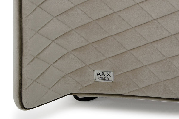 The horseshoe silhouette of the Talin Sofa Set is highly innovative. Pairing traditional diamond stitching with a contemporary beige velvet, this set stands out. Brown piping finishes the seams of these gorgeous pieces, creating glamour and contrast. Pair with other Talin pieces to complete a fully realized room.
