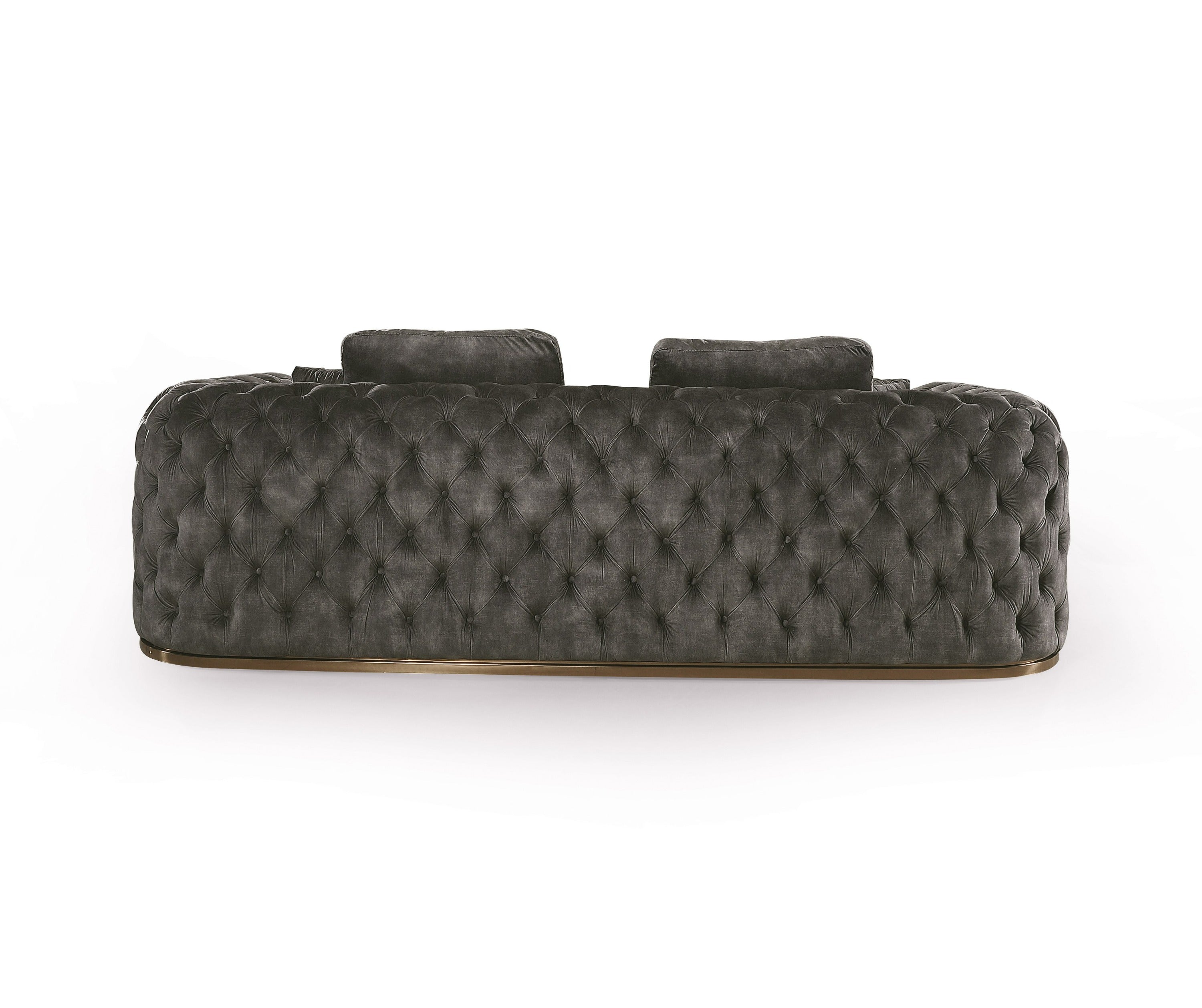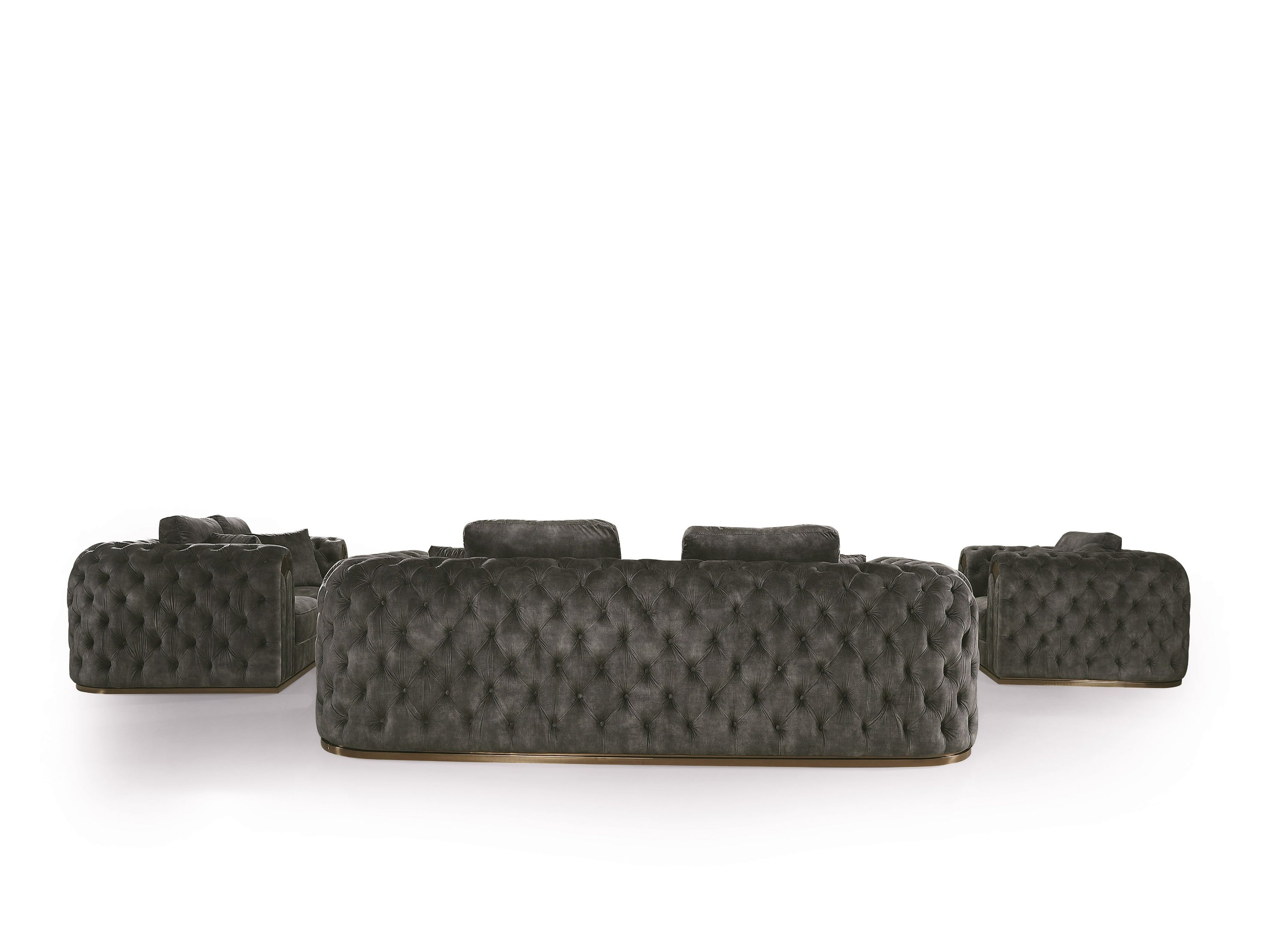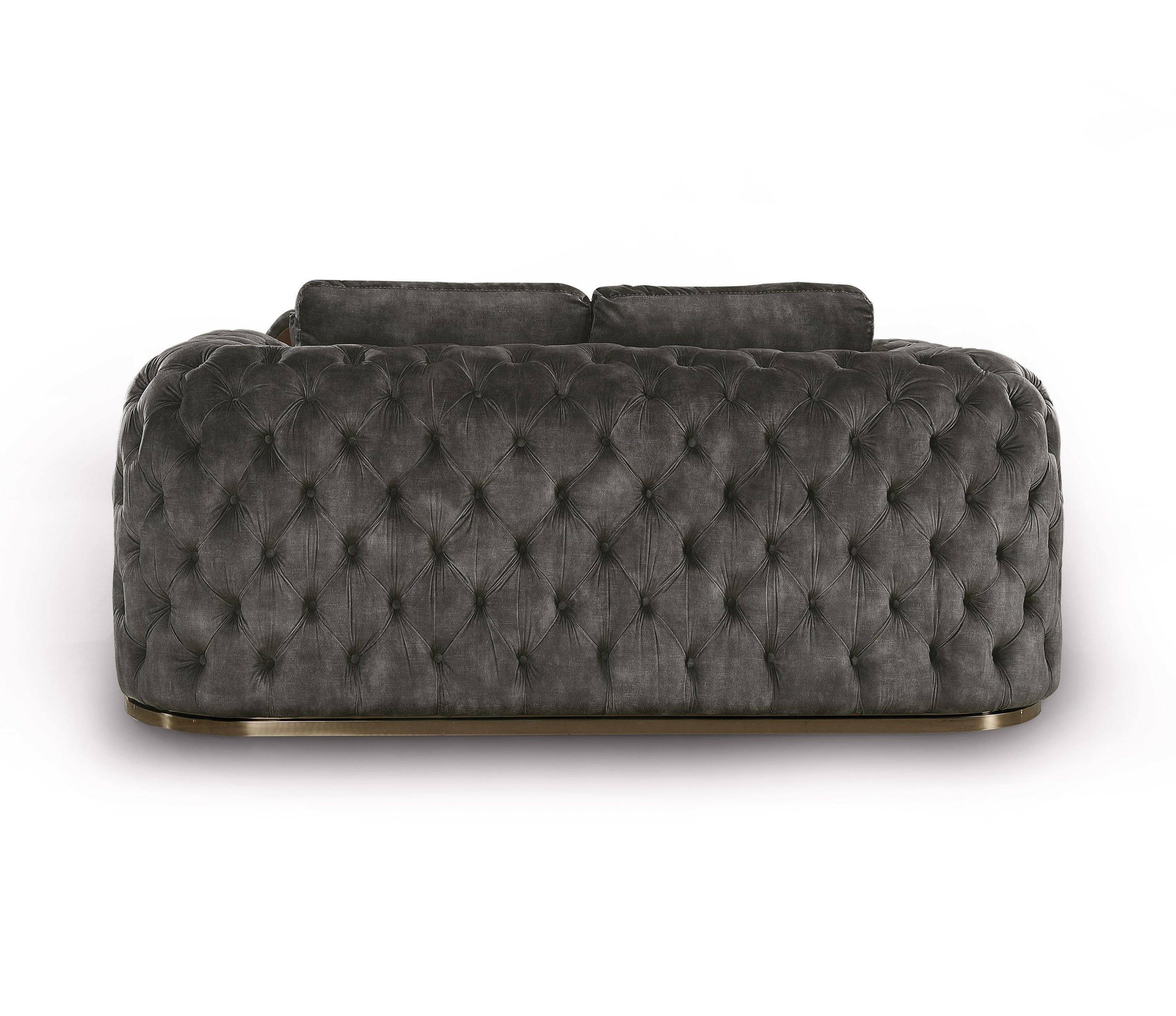 The Divani Casa Dosie Transitional Grey Velvet Sofa Set is a sophisticated ensemble that combines comfort and elegance. Upholstered in a luxurious grey velvet fabric, this set includes a sofa, loveseat, and chair. The gold stainless steel legs and accents add a touch of opulence, while the button-tufted arms and back provide a classic look. With five throw pillows included, this set is perfect for lounging. The eucalyptus wood frame, foam upholstery fill, and sinuous springs seat construction ensure durability and comfort. Whether for entertaining or relaxation, this sofa set exudes timeless charm and style.