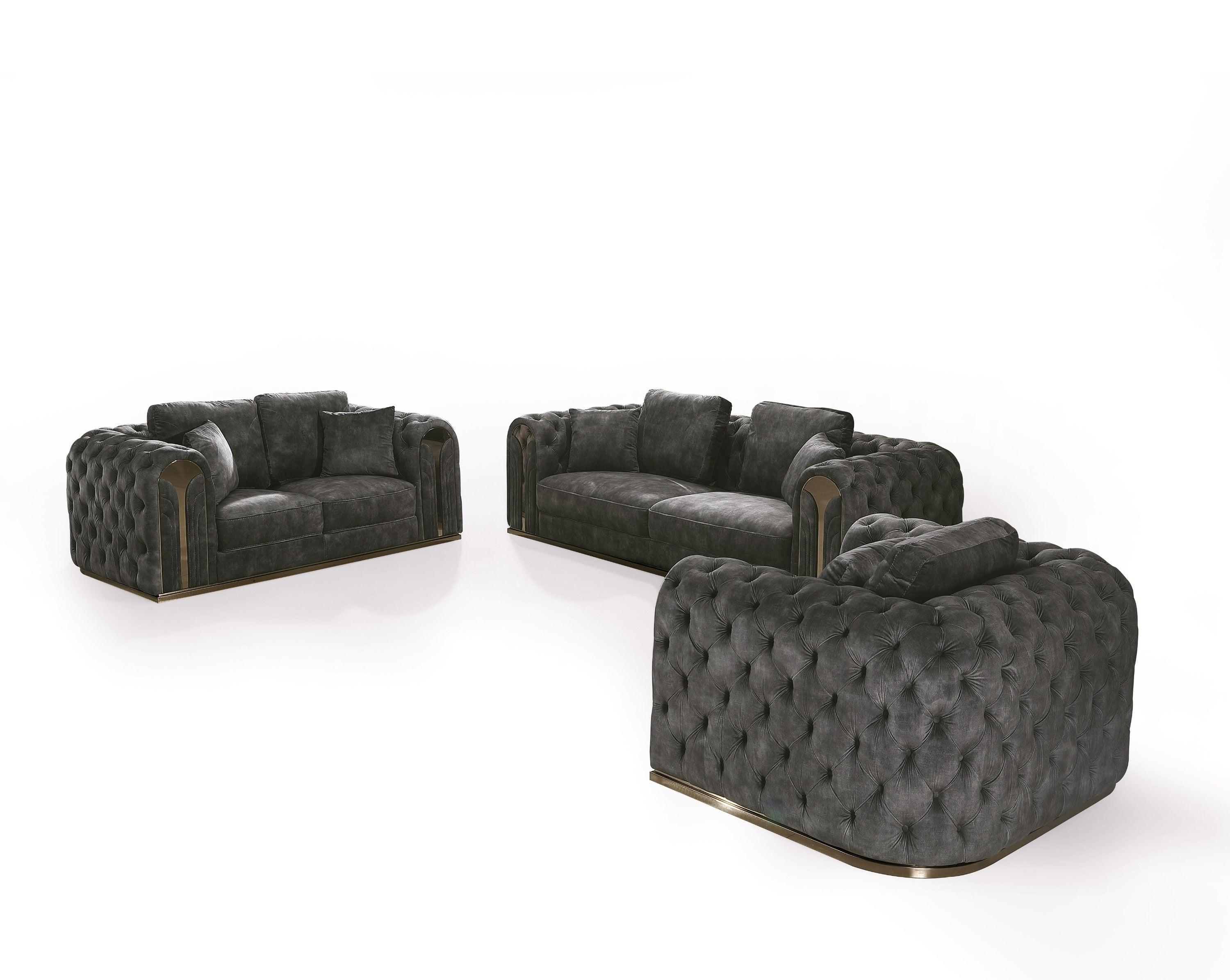 Divani Casa Dosie Transitional Grey Velvet Sofa Set Model VGBN-S-9368-SET-GRY