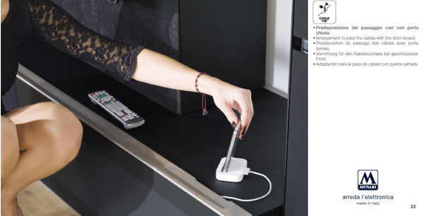 - Built in gang plug for connections for TV, Decoder and DVD with concealed wire management.