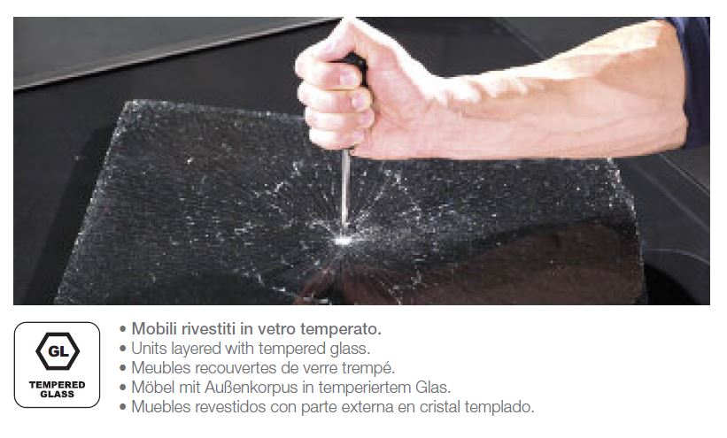 - Shiny metallic charcoal grey glass. Panel in scratch resistant black finish.